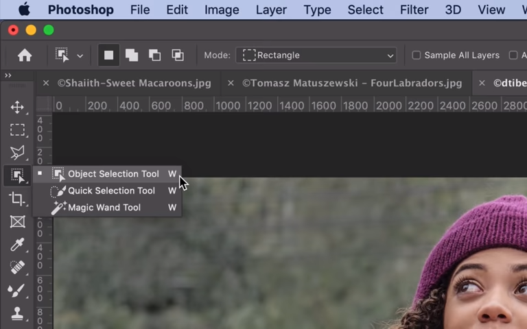 L’outil sélection d’objet utilise la même base technologique, mais va plus loin. L’outil sélection de sujet se focalise sur le sujet principal dans l’image. Il ne vous laisse pas lui montrer qui est le sujet.