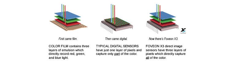 Rappelons tout d’abord que Sigma se distingue des autres constructeurs de boîtiers numériques par l’intégration à ses appareils de capteurs Foveon en lieu et place de classiques capteurs à matrice de Bayer. Le principe de capteur développé par l’entreprise Foveon – maintenant détenue par Sigma – consiste en la superposition de trois couches autorisant la capture des trois couleurs primaires de la synthèse additive (rouge, vert et bleu). Contrairement aux capteurs utilisés par la concurrence, aucune interprétation des couleurs n’est donc nécessaire après la capture du signal lumineux. Si la qualité d’image s’en trouve améliorée sur de nombreux points, l’utilisation des capteurs Foveon engendre malheureusement plusieurs contraintes telles qu’une certaine lenteur et une gestion du bruit numérique très mauvaise.