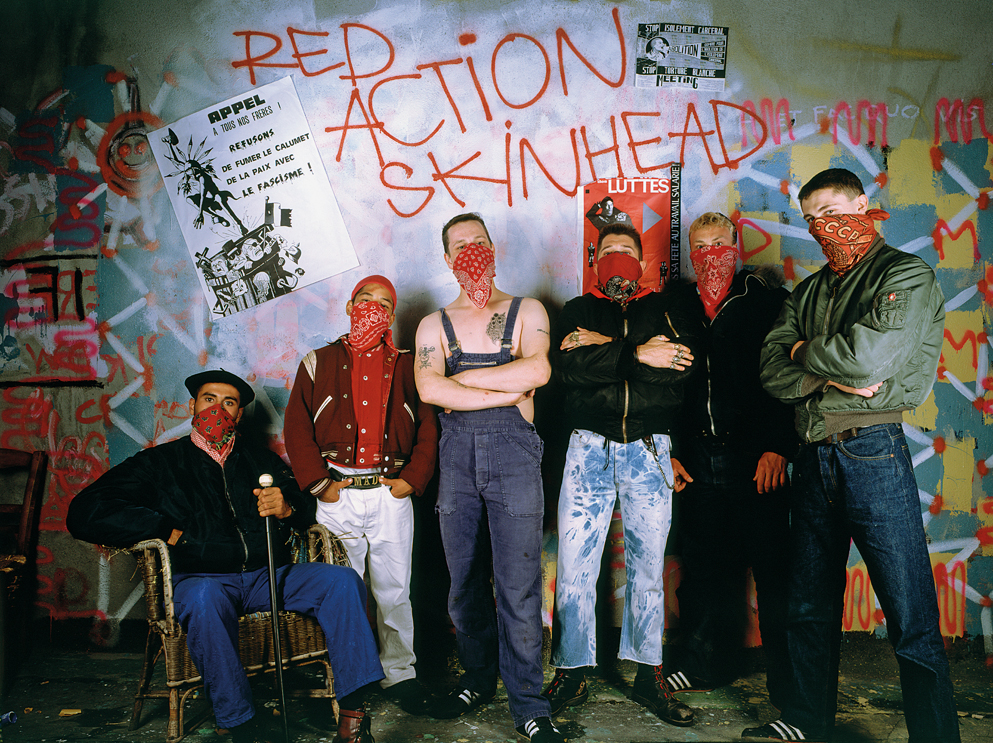 « Redskins, banlieue est de Paris, 1988. Issus de skins « originaux » et de punks s’étant regroupés pour revenir aux racines du mouvement anglais, ces skins « communistes » et antiracistes, arborant bandanas et lacets rouges, livrent bataille aux skinheads d’extrême droite. »