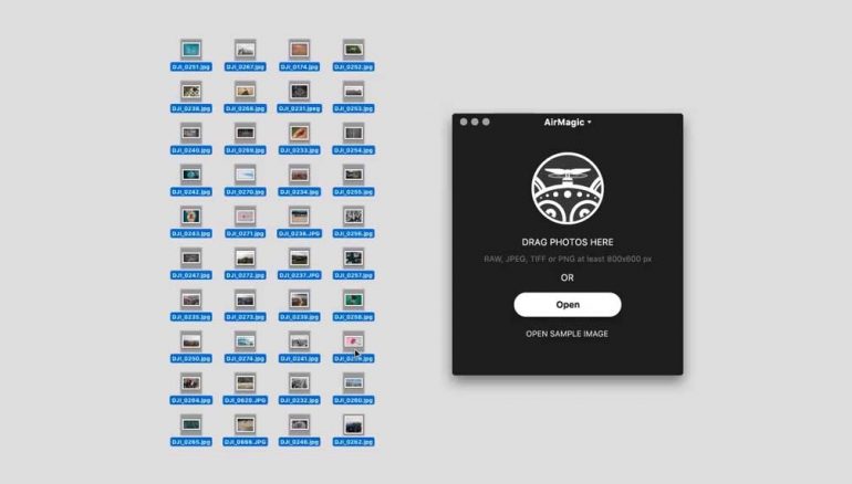 Pour utiliser AirMagic, il vous suffira tout simplement de glisser-déposer l’ensemble de vos photos aériennes de la dernière prise de vue. AirMagic s’occupera du reste.