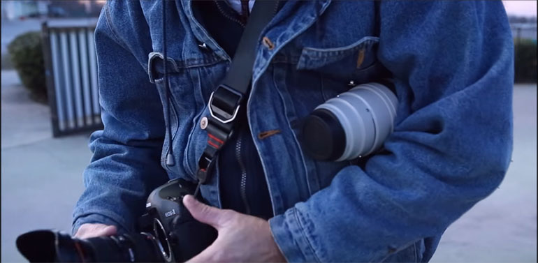 Le système proposé par PeakDesign ressemble par beaucoup d’aspects au Lens Flipper. Mais il a l’avantage d’être compatible avec les solutions Capture Clip de la marque. On a ainsi le choix entre une solution de portage par sangle ou par clip, à la ceinture. Il est disponible en monture Canon, Nikon et Sony et contrairement à ce que pourrait laisser penser l’image ci-dessous, il est apte à supporter des optiques bien plus lourdes.