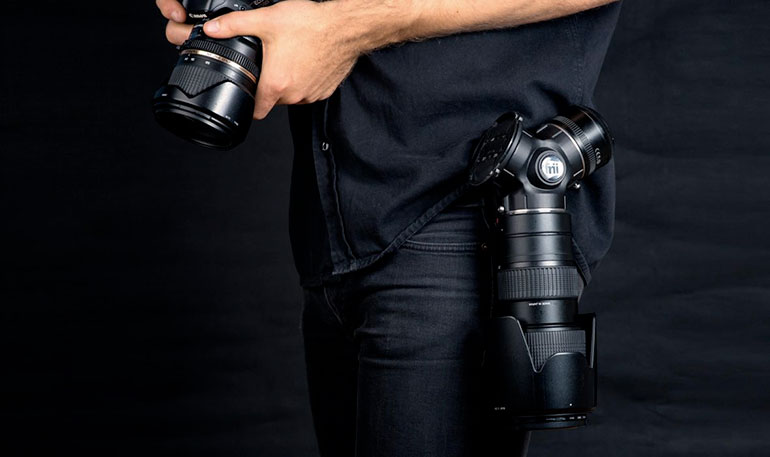 Trilens est une autre solution, qui permettra cette fois-ci de transporter 2 optiques et non une seule, tout en proposant un système de fixation plus proche du corps. Grâce à un système rotatif, l’emplacement pour changer d’optique sera toujours disposé vers les haut.