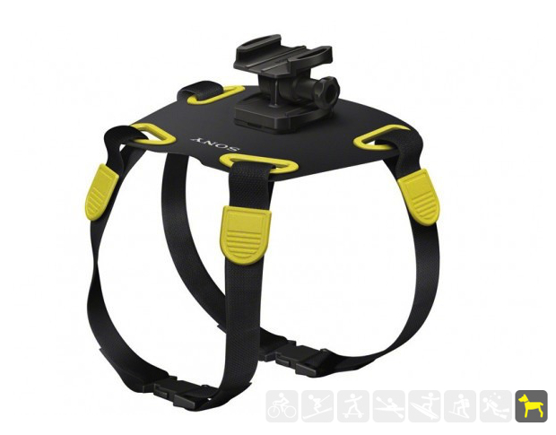 Toujours dans l’idée de fournir un maximum d’équipements aux amateurs de vidéos à sensation (des protections étanches, des grips solides pour toutes surfaces), Sony décide de s’attaquer à nos amis les bêtes avec le modèle AKA-DM1. Si à première vue, l’objet présente quelques contraintes (l’animal doit respecter un certain gabarit, plus de 15 kilos et un cage thoracique entre 50 et 80 centimètres), il reste compatible avec les principales caméras concurrentes.