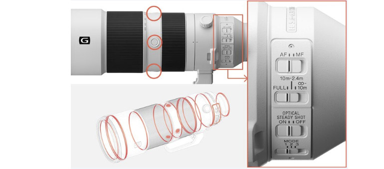 Sony a repris la formule à succès de son 400 mm f/2,8 pour construire une optique plus légère que ce qui est en général proposé sur le marché. Le poids est considérablement réduit par rapport aux concurrents chez Canon et Nikon.