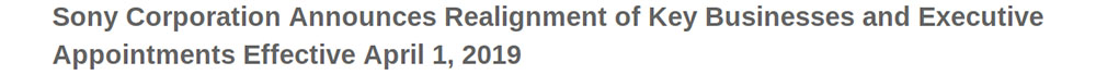 Évoquée comme un « réalignement des activités clés » de Sony, la discrète annonce de la fusion de plusieurs branches de la multinationale nippone a été publiée sur le site internet de Sony en date du 26 mars 2019. Ainsi, les divisions Mobile Communications, Imaging Products and Solutions et Home Entertainment and Sound deviendront Sony Electronics Products & Solutions à compter du 1er avril 2019.