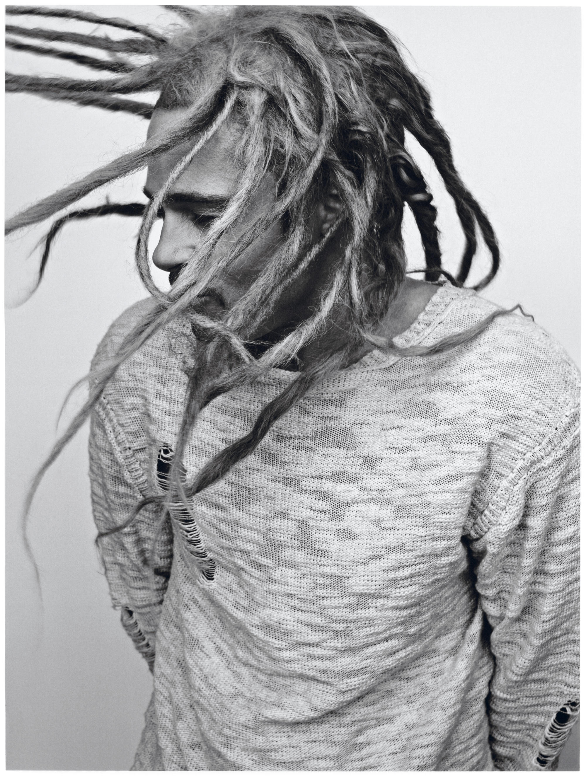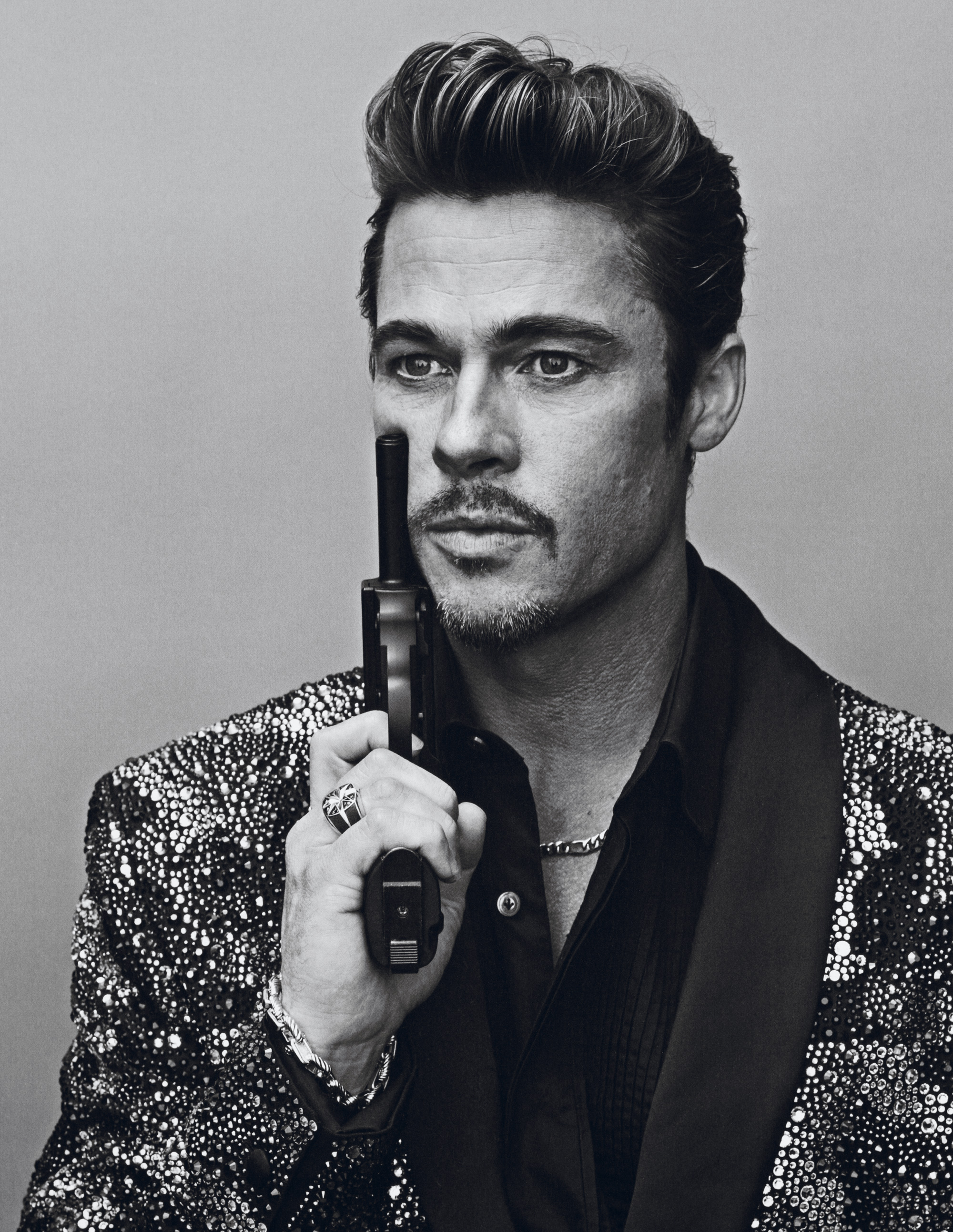 Steven Klein, déjà responsable pour W Magazine d’une série mettant en scène l’acteur dans la peau de Tyler Durden (Fight Club), transforme ici M. Jolie-Pitt, l’incarnant à tour dans un rôle de tueur à gages tiré à quatre épingles, un rasta débraillé et décoloré ou un alcoolique du dimanche, pour en citer quelques-uns.