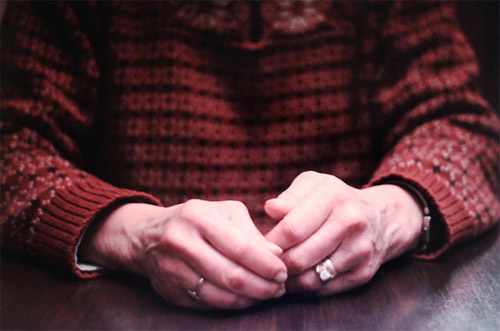 Cette image me raconte une histoire particulière : cette femme est atteinte de parkinson, et ses mouvements sont devenus difficiles. Ses mains détiennent de nombreux secrets, et expriment peut-être un peu de tristesse.