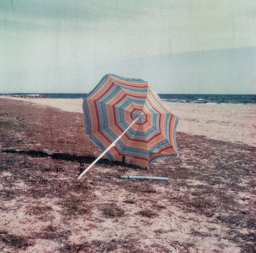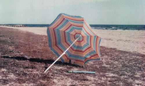 Ce parasol fait tout abandonner, donc cette photo a un effet un peu glauquy triste mais il n est pas seul\ Il a une famille qui l attend\Marcel arrive bientot et va traverser le champ de la photo\ Oh joie\