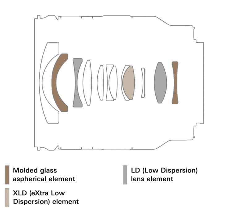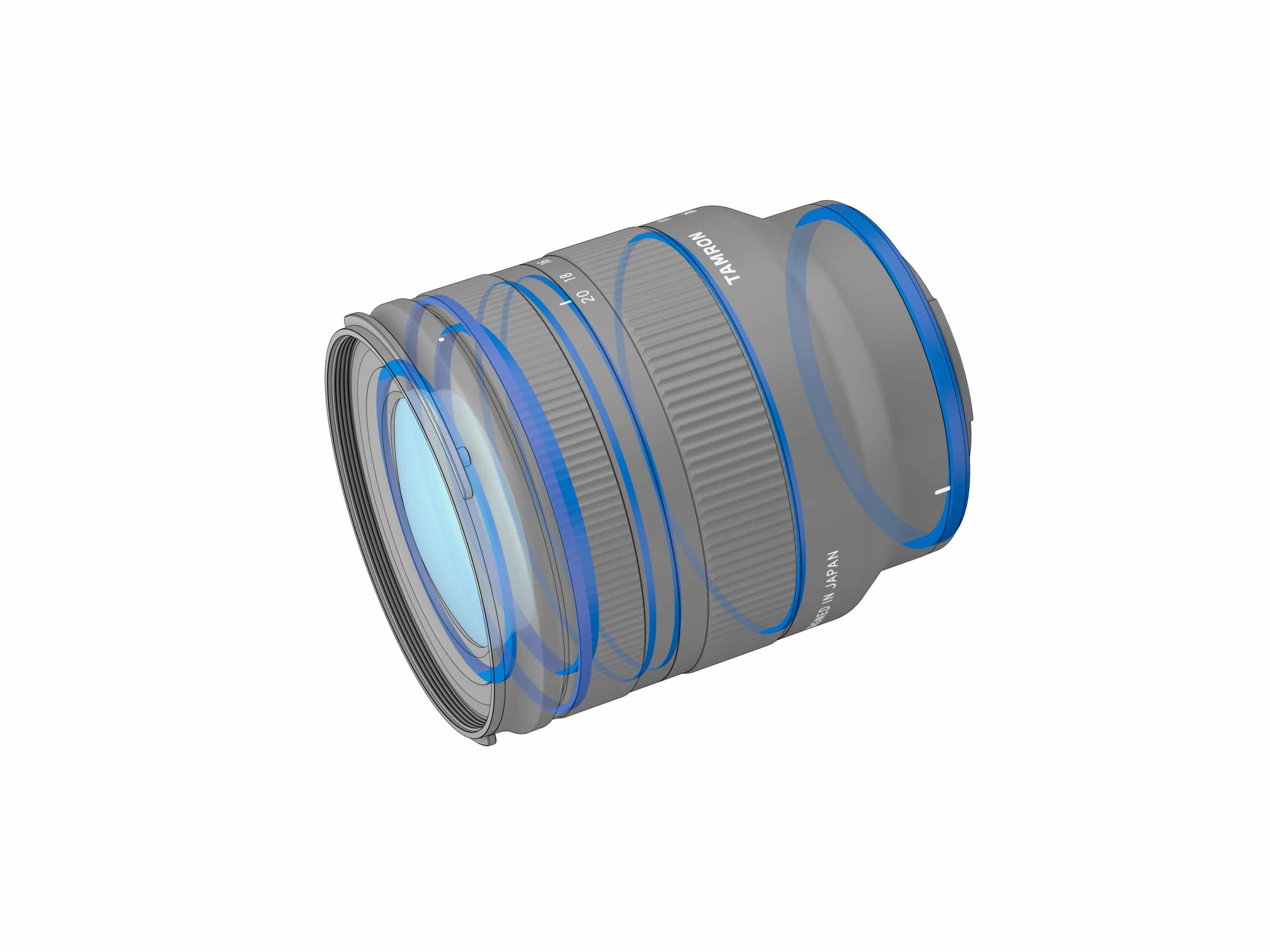 La formule optique du Tamron 11-20 mm f/2,8 Di III-A RXD exploite une architecture à 12 éléments associés en 10 groupes. On retrouve deux lentilles asphériques GM (Glass molded Aspherical), un verre XLD (eXtra Low Dispersion) et deux lentilles LD (Low Dispsersion).