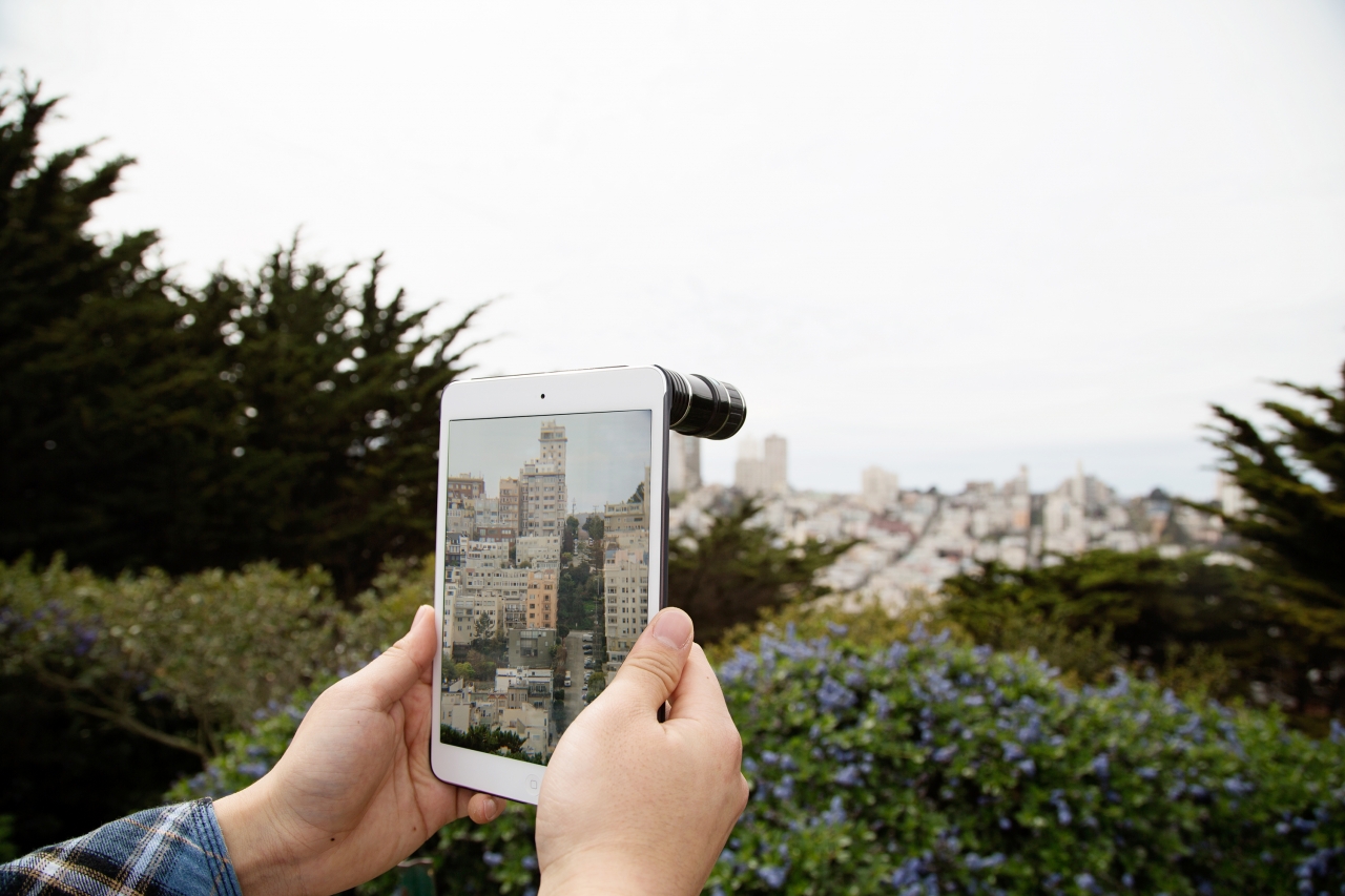 Quelques années plus tard, ce geste lourd de conséquence nous mène à cet objet : la lentille Telephoto Lens. Présentés sous forme de deux lentilles : un zoom x10 pour iPad Retina (iPad 3 et 4), et un zoom x12 iPad Mini, pour une profondeur de champ sans commune mesure avec le zoom « tueur de pixels » d’origine. Et la possibilité de régler la focus manuellement, ou comment régler le problème du zoom en faisant définitivement une croix sur la question du look.