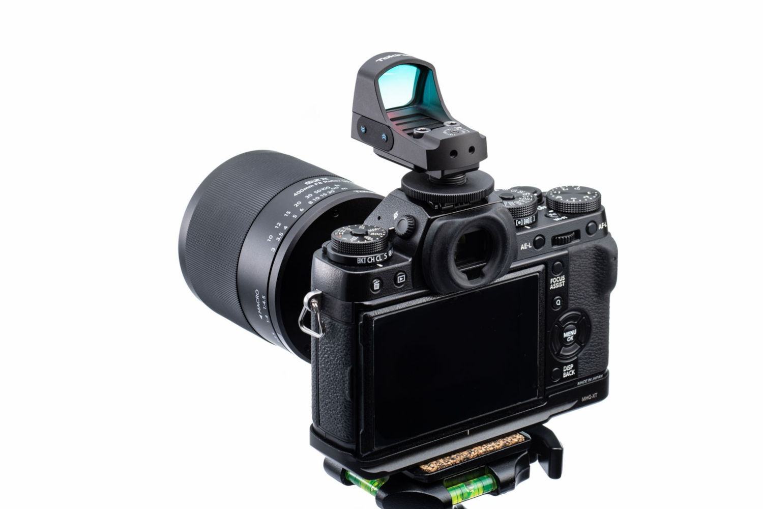 Le problème que Tokina souhaite résoudre avec le SZ Super Tele Finder Lens (TA-018) est le suivant : lors de l’utilisation d’une très longue focale, l’angle de champ étriqué de celle-ci rend parfois compliqué le fait de repérer et de suivre un sujet en mouvement de façon à le photographier au moment opportun. Fixé sur la grille porte-accessoire de l’appareil photo, le SZ Super Tele Finder Lens constitue un viseur optique sur lequel est projeté un point rouge d’assistance à la visée. L’alignement de ce point et du sujet témoigne ainsi de la présence de ce dernier dans le cadre, tandis que l’utilisateur n’a pas besoin de coller son œil au viseur et conserve donc un large angle de vision – à noter que le cadrage pourrait cependant se révéler approximatif.