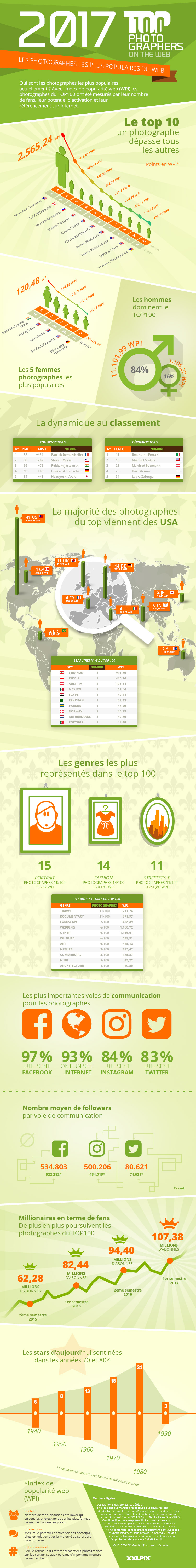 Comme à son habitude XXLPIX vient de publier son top 100 des photographes les plus populaires sur le web. Découvrez le nom de ceux qui trustent les premières places ainsi que les photographes français dont les noms résonnent au delà de l’hexagone en ce début d’année 2017.