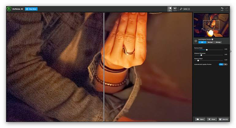 Et Topaz, connue de longue date pour ses solutions de retouche, met aussi le paquet sur l’IA. Après Gigapixel AI, JPG to RAW AI, et Sharpen AI, Topaz Denoise AI est le nouveau logiciel de l’entreprise. Il promet une réduction du bruit automatique, sans perte de qualité d’image, grâce à son intelligence artificielle.