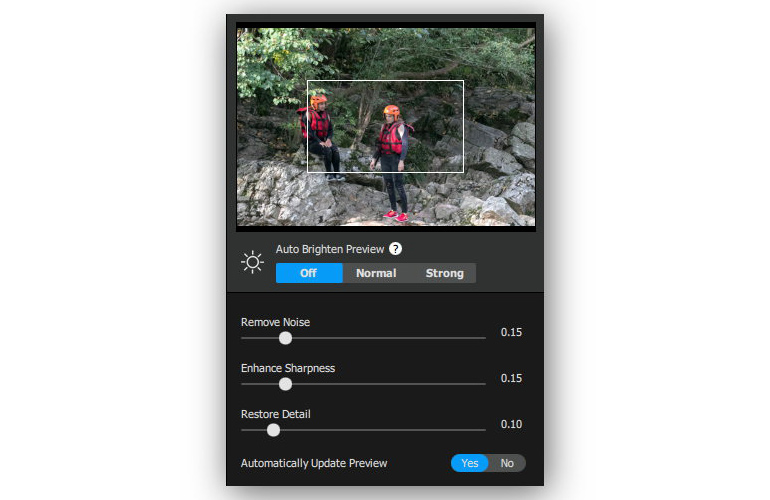 Le fait de pouvoir modifier l’intensité du débruitage, de la netteté, et la restauration des détails de manière isolée est extrêmement efficace à l’usage. En réalité, on ne tirera pleinement parti des capacités du logiciel qu’en dosant avec précision ces trois curseurs.