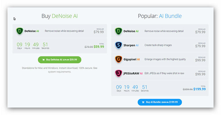 A noter aussi, Topaz propose une offre de lancement à 59,99 $ au lieu de 79,99$ qui reste encore valable pour quelques jours. Et pendant cette même période, Topaz Labs propose d’obtenir toute la suite de logiciels basés sur l’IA à 199,99 $ au lieu de 359,96 $.