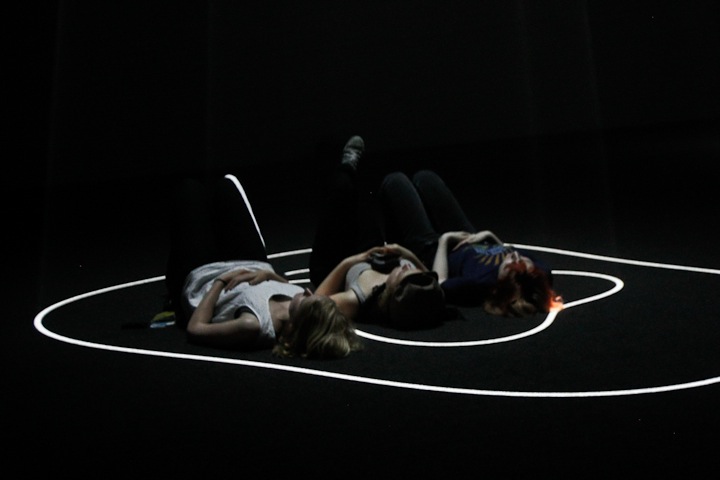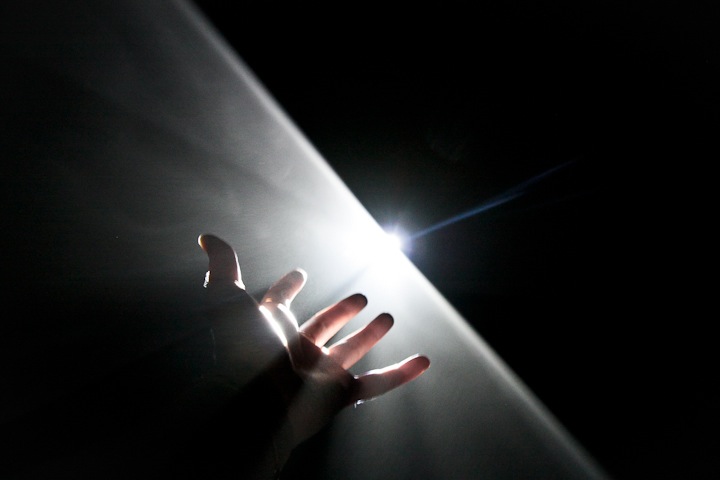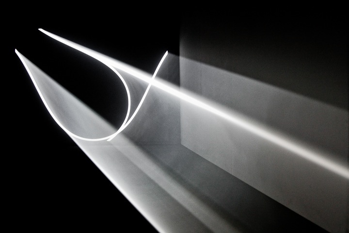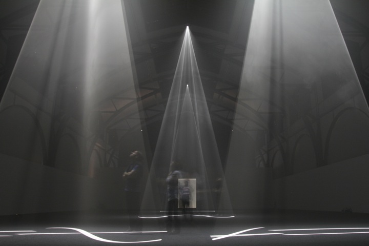 Invité récemment au Hamburger Bahnhof à Berlin, l’artiste a pu mettre en place sa structure sur plus de 1000 m² et convier les participants à s’essayer à cette expérience sensorielle. Dans un noir profond, les victimes tâtonnent dans un labyrinthe obscur brisé par quelques filets de lumière, des voiles tendus comme des objets bien solides, à l’aspect étonnement tangible. L’artiste le confesse, son but est de créer des volumes tangibles en partant de rien, de faire travailler l’imagination par la création de formes, de donner envie de saisir l’insaisissable.