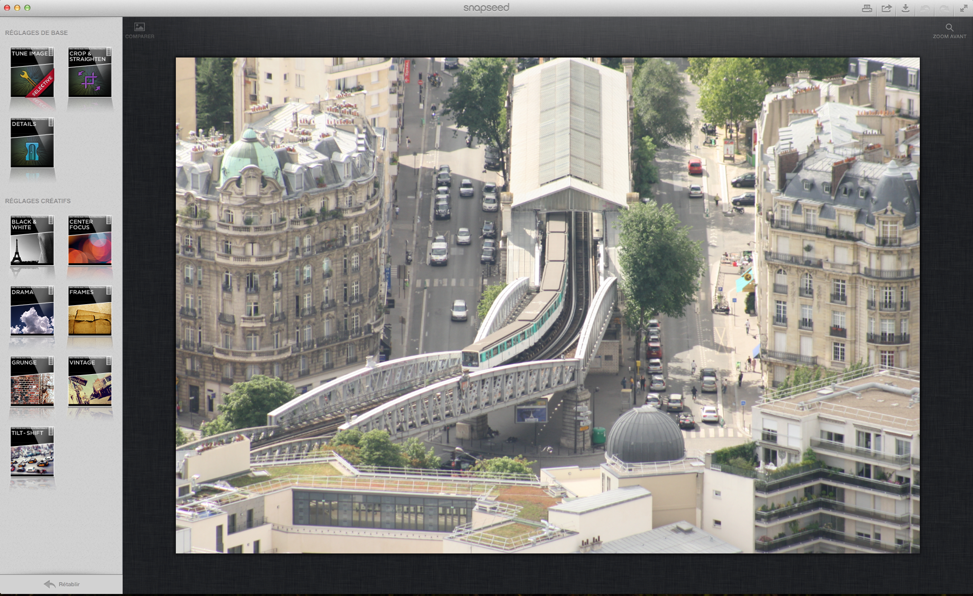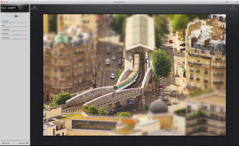 Vous n’avez donc pas besoin d’une « tilt-shift lens » pour produire cet effet. Une simple application suffit donc. Il est possible de le faire via Photoshop avec le plugin Tilt-Shift, disponible dans la catégorie « Blur Filter » ou via Aperture et son plugin spécial développé par Stefan Hafenger. Ici, nous allons expliqué la marche à suivre avec Snapseed, une application gratuite et disponible sur iOS et Android.