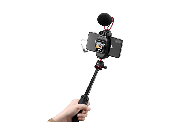 Le support proposé par Ulanzi est équipé de tout ce qu’il faut pour d’abord constituer un bon support pour smartphone. Compatible avec toutes les modèles d’iPhone entre 58 et 89 mm, il est doté à sa base d’un pas de vis standard pour fixer un mini-trépied. On trouve aussi un emplacement pour ajouter microphone, un éclairage LED, ou tout autre accessoire qui se fixe habituellement sur la griffe porte-accessoire d’un appareil photo.