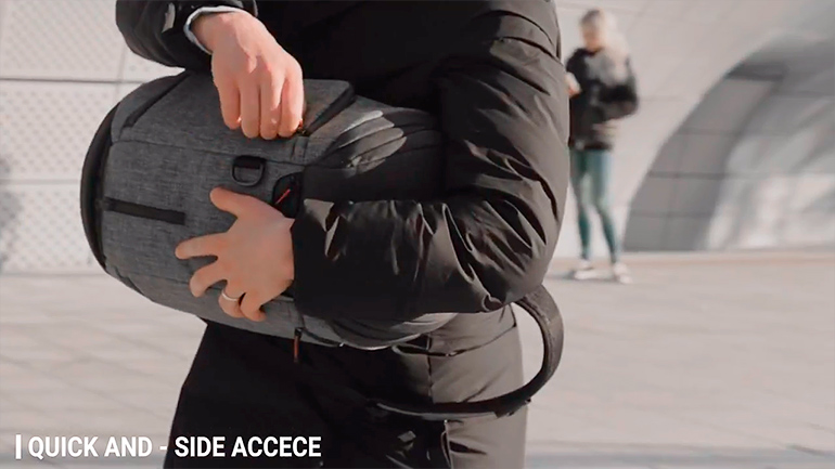 Notons aussi que ce sac est de type “Sling”. Cela signifie qu’il peut glisser du dos vers le ventre d’un simple mouvement. Votre appareil est ainsi accessible instantanément.