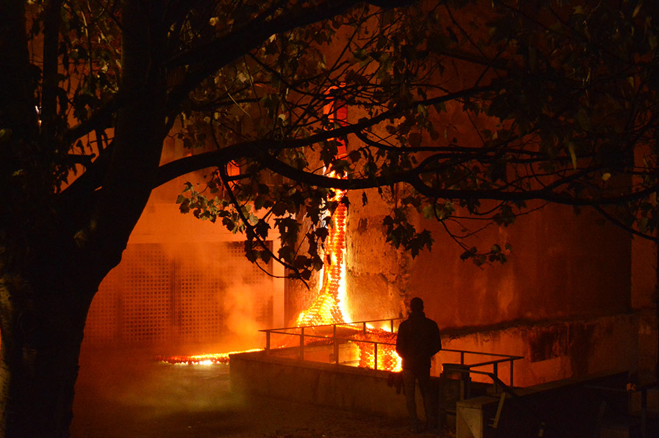 Un travail hautement métaphorique : le papier est le matériau le plus sensible aux flammes qui soit. Ici, il est lui-même la flamme. De chose fragile il devient acteur d’une illusion d’optique impressionnante et étonnante par la minutie de ce travail d’origamis. L’installation dépasse l’expérience physique et prend tout son sens en photographie. Ces images questionnent, interrogent, intriguent au point que le spectateur se retrouve perdu face à un spectacle inexplicable.