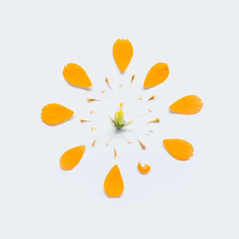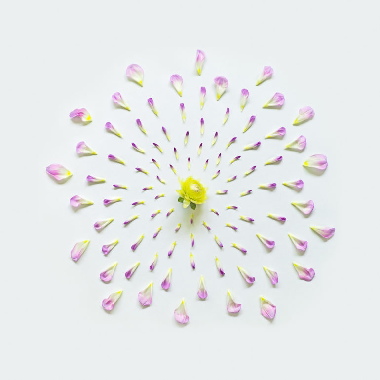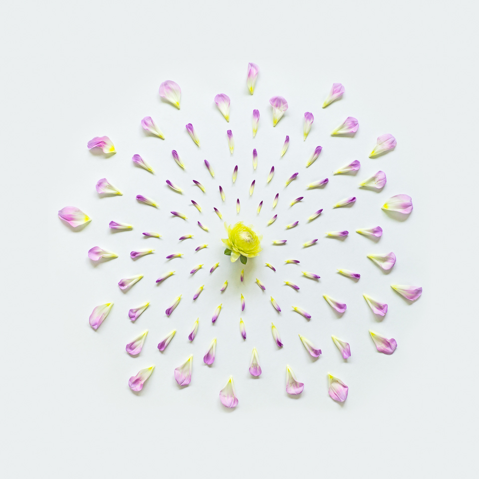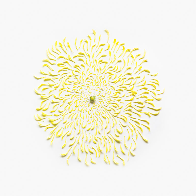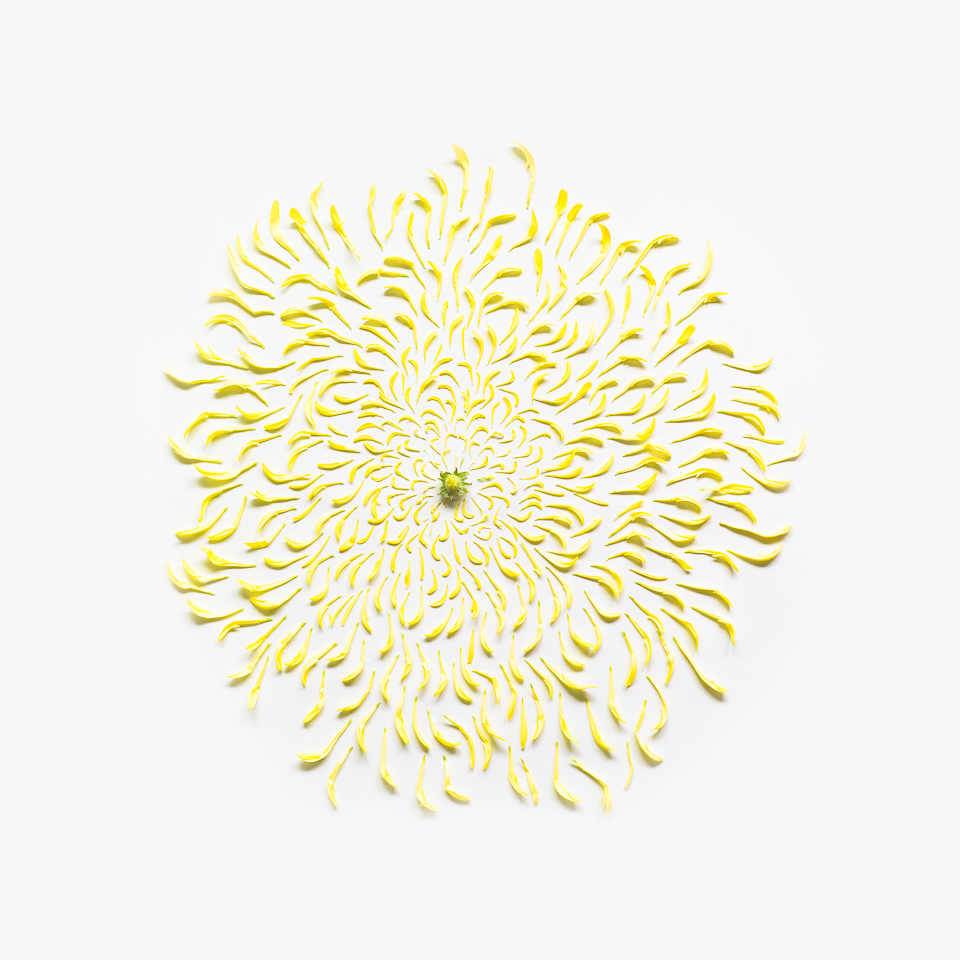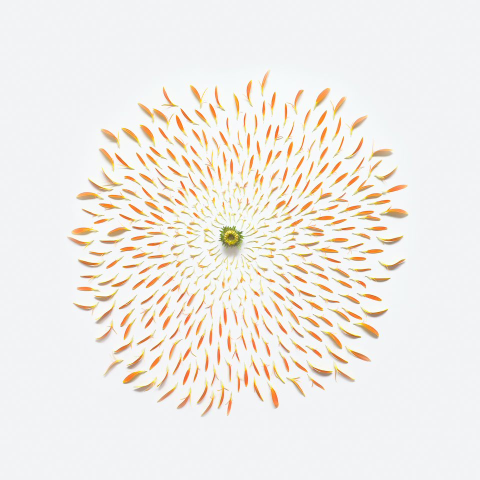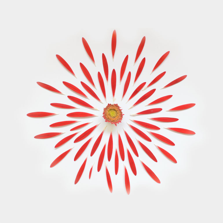 Loin du symbole poétique et amoureux que l’on connaît tous, Fong Qi Wei prend à contre-pied cet idéal et nous livre un autre type de beauté, structurel. De la fleur décortiquée pièces par pièces dévoilant l’étendue de sa complexité, des pétales très colorés en surface aux minuscules pistils invisibles et insoupçonnables. La série Exploded Flowers fait l’étalage de cette fascination symétrique, la fleur mise à plat et étirée prend la forme d’un tableau complexe et étonnamment vivant.