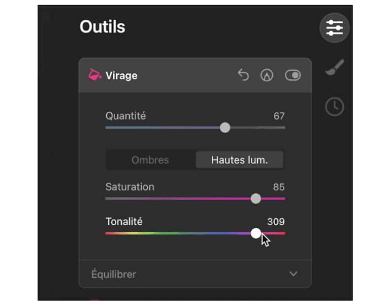 L’outil virage ne change pas fondamentalement. Mais contrairement à la version 1, il a été relooké pour adopter le même design que les autres outils Luminar.