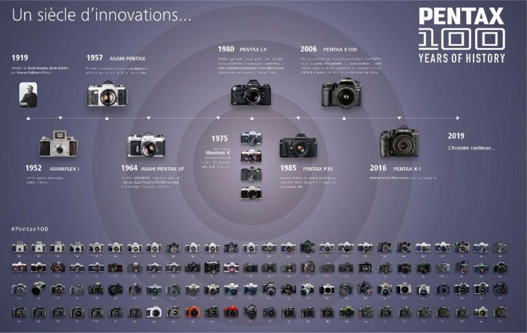 Pour l’occasion, Pentax lance un cache griffe en édition limitée à 3 000 exemplaires ciglés : PENTAX 100 YEARS OF HISTORY