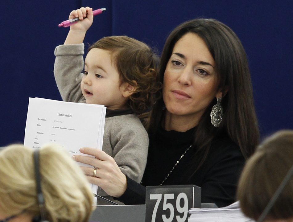 Tous les moyens sont bons pour faire entendre sa voix en politique. Licia Ronzulli l’a bien compris, accompagnée à chaque séance traitant des questions de la femme, de sa vie privée et publique, de sa ravissante petite fille Vittoria.
