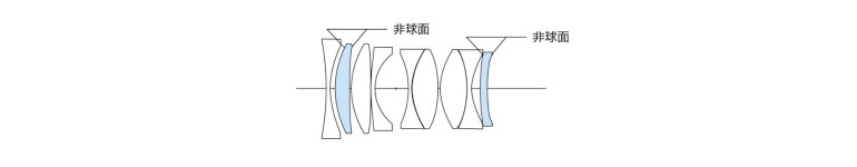 L’optique est construite autour de 9 lentilles organisées en 7 groupes donc 4 lentilles asphériques, et des verres à haut indice de réfraction, pour une qualité d’image de haut niveau.