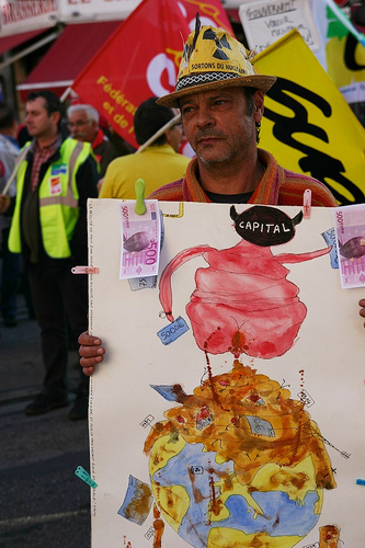 J’aime bien celle-ci : http://www.flickr.com/photos/chollier/5102292785/in/set-72157625211862530/ prise pendant les manifestations contre la réforme des retraites à Lyon. Ou plutôt par ici sans l’horrible watermark (shame on me) : http://bearnaise.net/~loic/DSC_0092.jpg