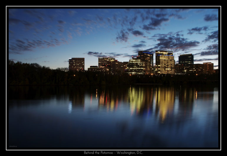 Dernière vacances de l’année à Washington D.C;. Derrière le Potomac, à la tombée du jour, on aperçois les immeubles de Roslynn.