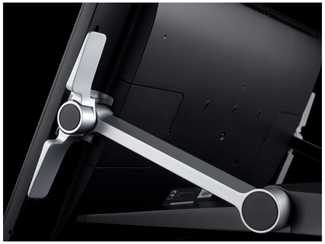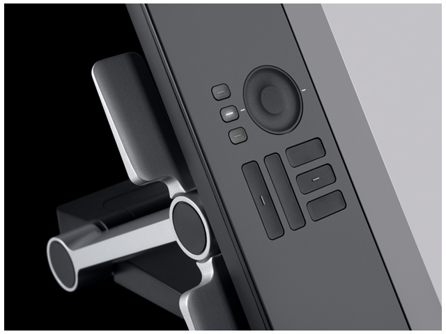 Cette nouvelle Cintiq se compo de deux éléments assez clairs : une tablette graphique comparable aux Intuos, mariée à une dalle de 24 Pouces intégrée (dalle H-IPS traitée anti-reflet), de qualité plutôt correcte au niveau du rendu des couleurs. L’ensemble se branche via USB, en plus du  DVI/VGA/Display port.