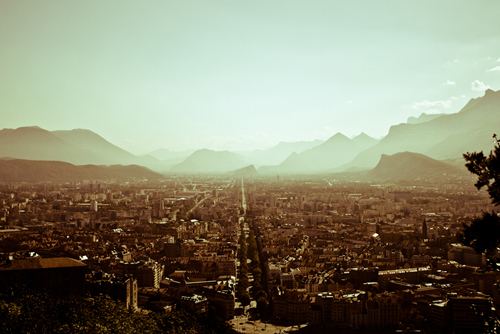 Une belle image (prise au dessus de Grenoble non ?) qui met en avant l’équilibre délicat entre la nature et la ville servie par un beau traitement !