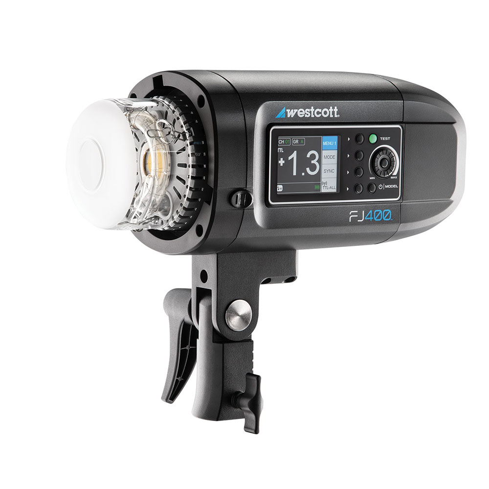 Disposant de caractéristiques relativement similaires à celles de l’AD400 Pro, le Westcott FJ400 constitue un flash autonome présentant un bon rapport entre puissance et transportabilité, ainsi qu’un prix de vente modéré. Sa fiche technique mentionne ainsi une puissance de 400 Ws paramétrable sur 9 diaphragmes (par incréments de 0,1 IL), une batterie amovible de 4 400 mAh autorisant 480 éclairs à pleine puissance, la possibilité d’un fonctionnement sur prise secteur, un temps de recyclage de 0,05 à 0,9 s, une durée de d’éclair pouvant atteindre 1/19 000 s, une température de couleur de 5 500 K (± 150 K), une monture Bowens S, une lampe pilote Led de 20 W, la technologie TTL, ainsi que la synchronisation haute vitesse jusqu’à 1/8 000 s.
