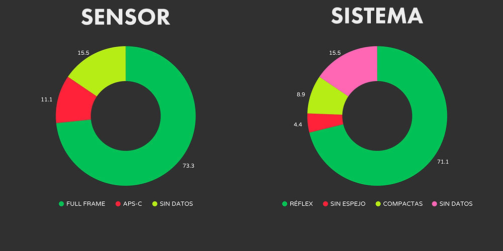 Bien que l’utilisation majoritaire (73,3 %) d’appareils plein format dans le milieu professionnel ne constitue pas une surprise, les rapports entre les types de systèmes de prise de vue les plus utilisés se révèlent un peu plus étonnant par rapport aux évolutions du marché. Les appareils reflex se trouvent en effet largement en tête, puisqu’ils représentent 71,1 % des boîtiers ayant servi à capturer les images primées. Viennent ensuite les appareils compacts (8,9 %), puis des hybrides qui se font bien discrets (4,4 %).
