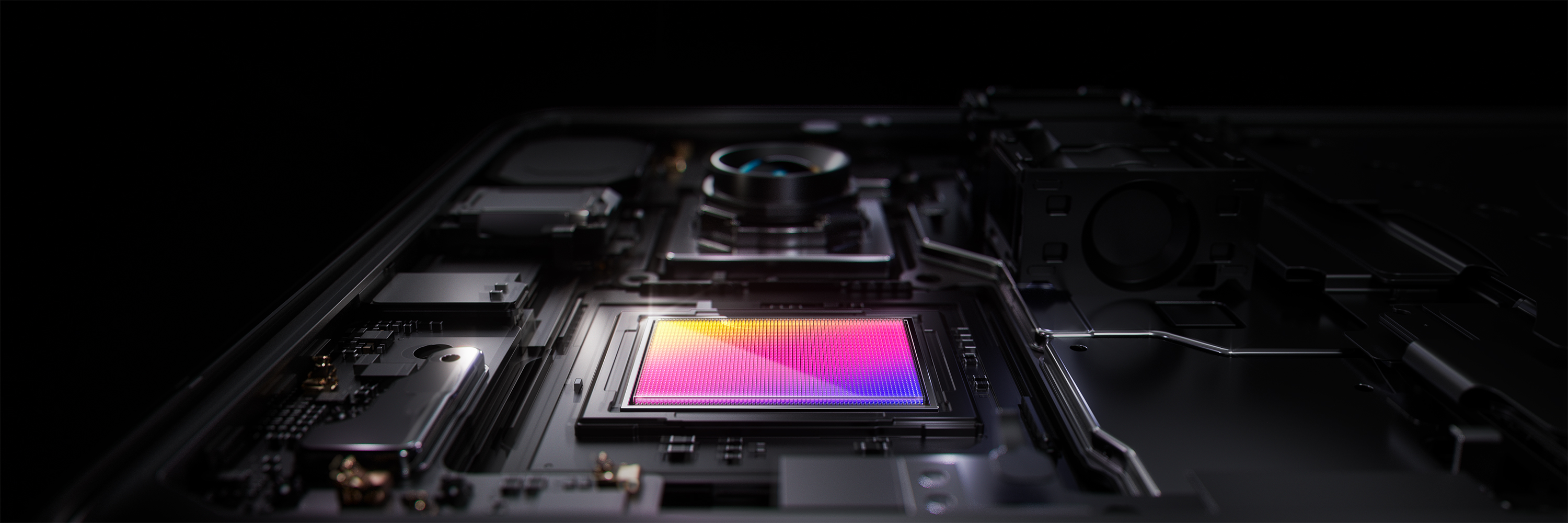 - module principal : s’appuyant sur le capteur 1 pouce LYT-900 de Sony, il bénéficie d’une stabilisation (OIS) et offre une focale de 23 mm avec une ouverture réglable allant de f/1,63-4,0.