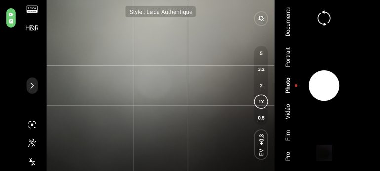 Première chose à faire sélection le mode photo labellisé Leica que l’on veut utiliser : Leica Vibrant ou Leica Authentic. Un choix qui sera fait en fonction du goût pour des couleurs plus ou moins saturées. Chose assez simple à réaliser puisqu’il s’agit de simplement cliquer sur l’icone avec le logo Leica en haut à gauche de l’écran (lorsque l’appareil est tenu en mode paysage).