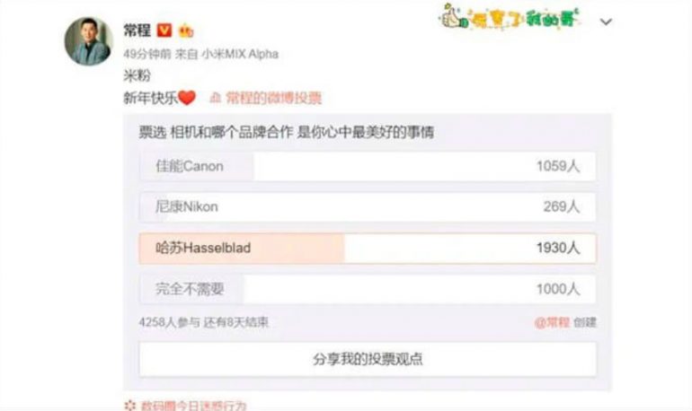 Les partenariats entre les constructeurs de smartphones et l’industrie photo ne sont pas nouveaux, mais la publication récente d’un sondage sur le réseau social chinois Weibo depuis le compte de Xiaomi a déclenché quelques émois auprès des photographes.