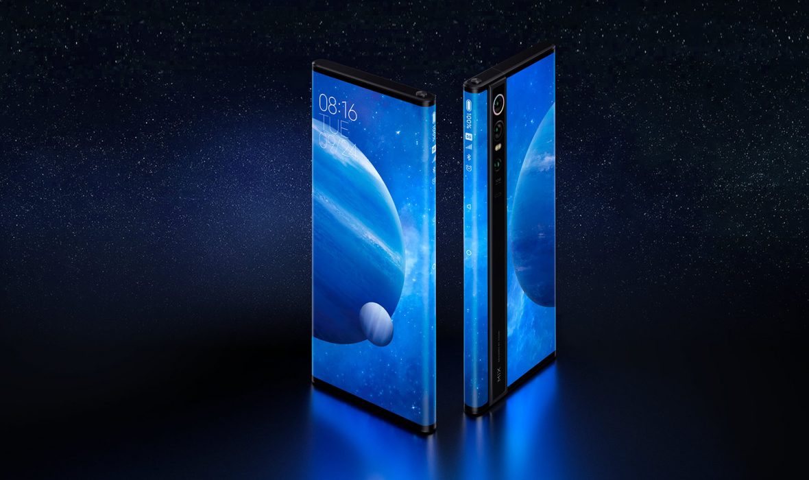 En plus de jouer la surenchère de mégapixels, le smartphone Xiaomi arbore un impressionnant design : plutôt que d’occuper une unique face du terminal, son écran l’enceint presque complètement – une bande en céramique et en verre saphir accueille les trois APN, et un châssis en titane structure les extrémités supérieure et inférieure du mobile. Des touches à retour haptiques et diverses icônes informatives prennent ainsi place sur les tranches du smartphone, tandis que son dos peut notamment servir à l’affichage de widgets ou de l’image sur le point d’être capturée par l’APN principal lors de la prise de selfies – le smartphone doit donc être retourné pour effectuer une telle opération.