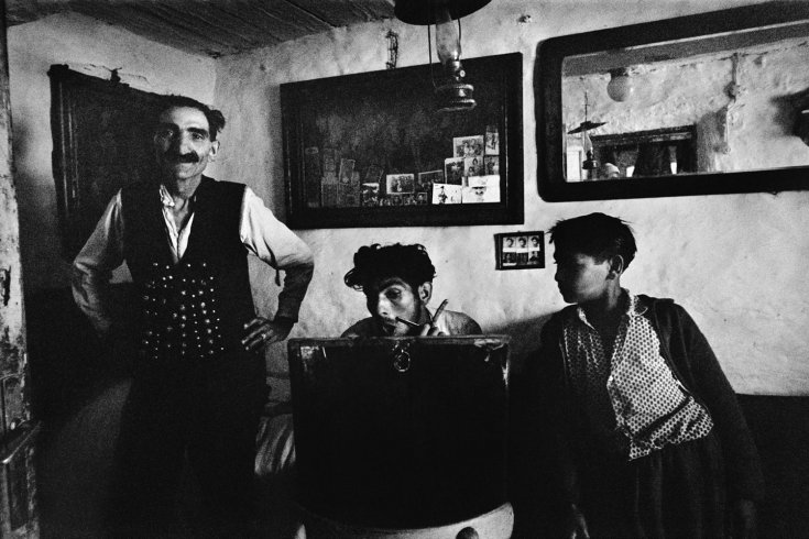 Le rencontre de Koudelka avec les populations gitanes, c’est bien plus qu’un reportage et certainement pas une étude sociologique. C’est peut-être par sa passion pour la musique qu’il crée des liens avec ces familles où un violon est toujours à portée de main? Le photographe semble se fondre dans ces quotidiens, les cérémonies, mariages, crises, veillées funèbres, il est intégré et photographie tout.